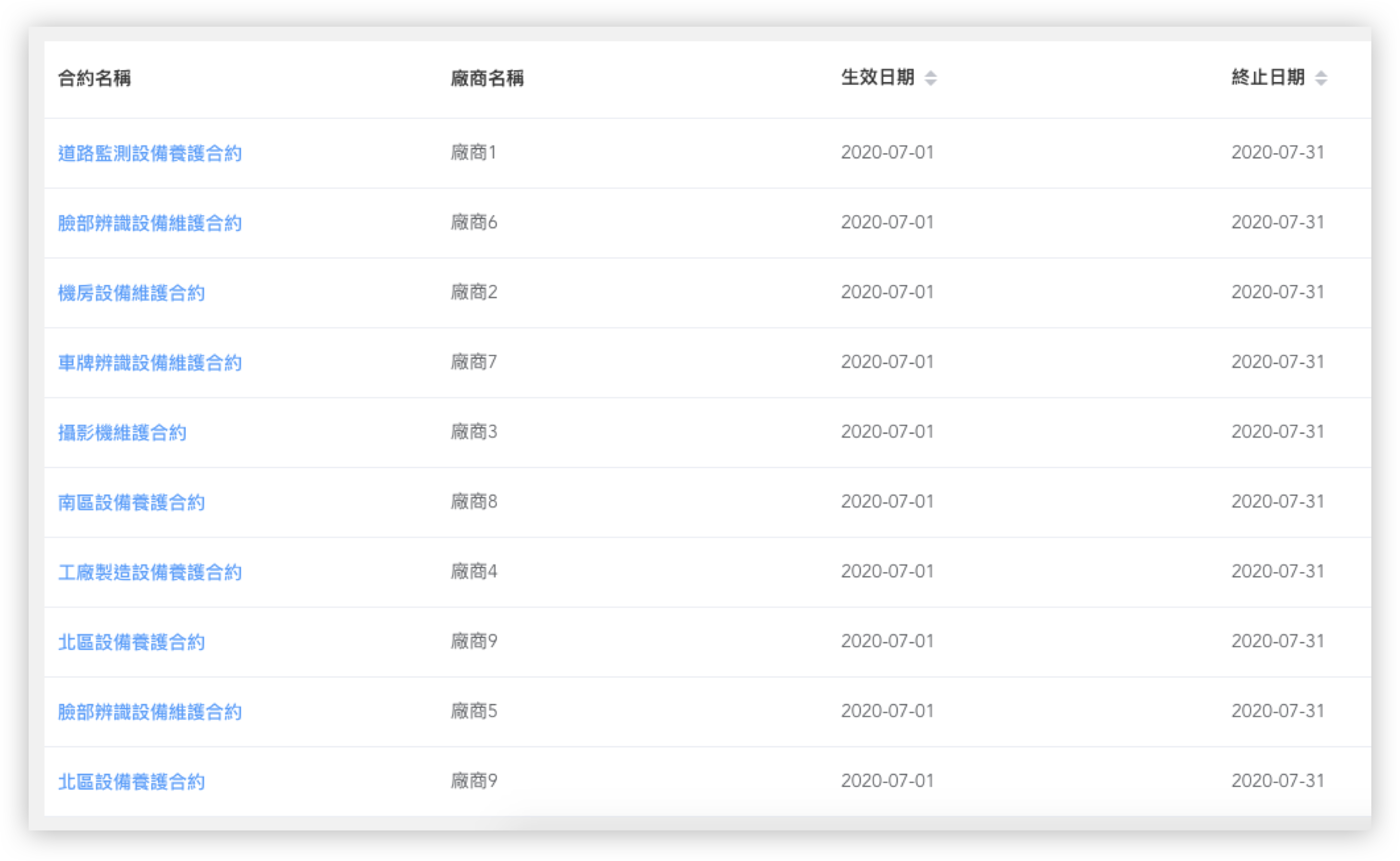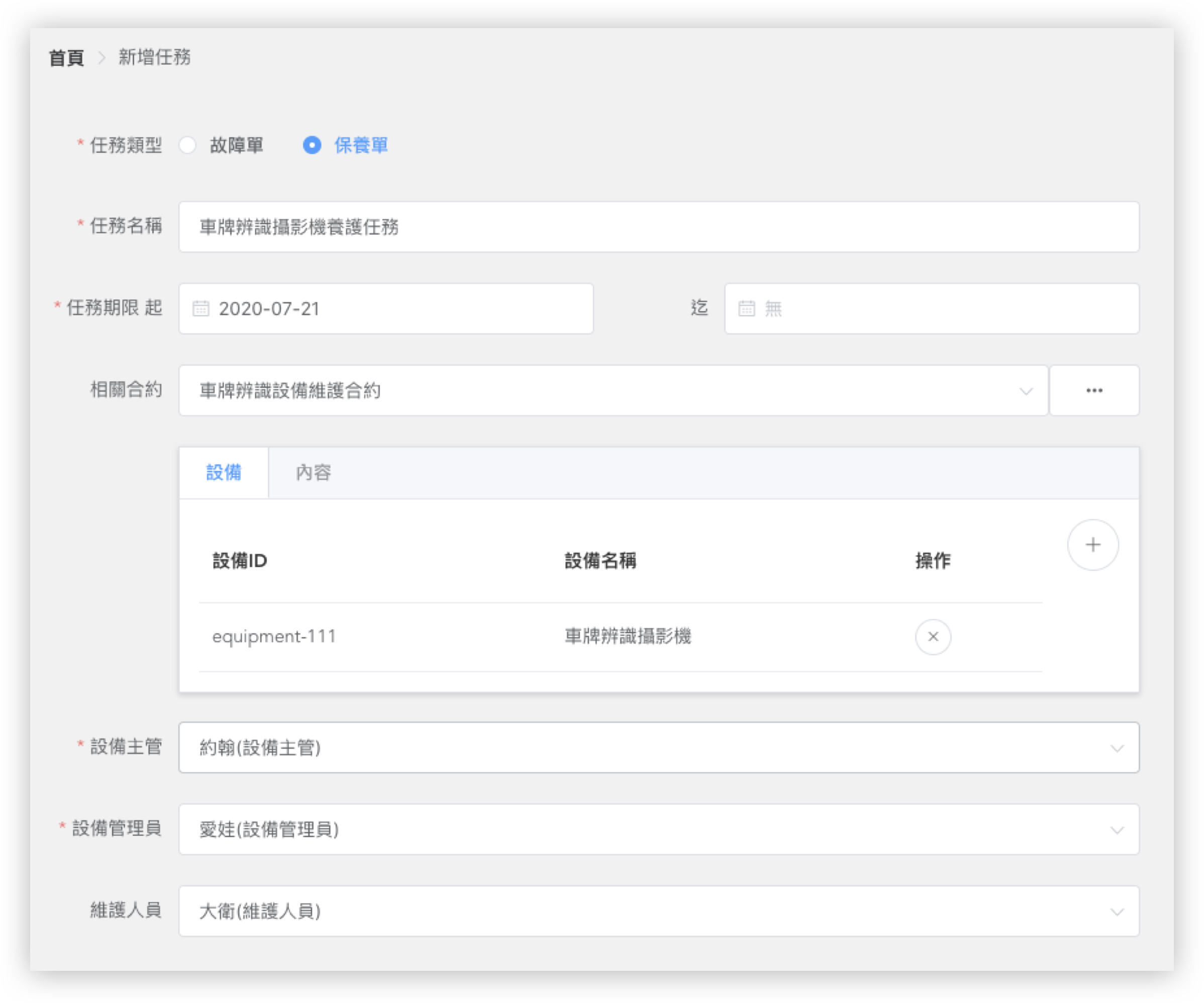 建立廠商與合約及設備之間的關係,讓設備相關資料管理更有效率